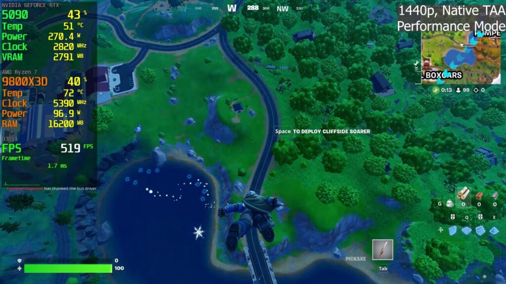 RTX 5090は現行GPUの中でも飛び抜けた性能を持ち、フォートナイトではその力を余すことなく発揮します。
